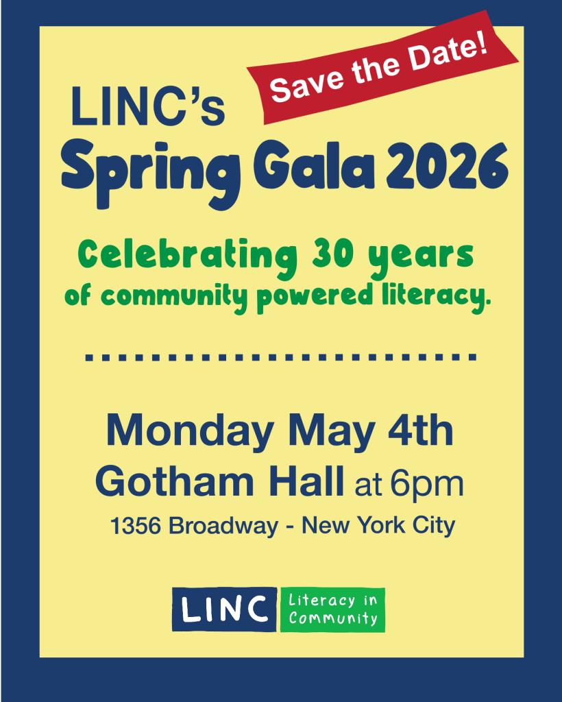 Thanks to everyone who joined our annual crowd-pleaser event Books and Brews at the Continental Bar and Lounge, where we raised a glass to little readers across New York City. This fun-filled happy hour raised funds to support LINC’s free reading programs and parent workshops across the city and fueled our mission to make literacy a right for all New Yorkers. Sign up for our newsletter to stay posted on next year’s event!